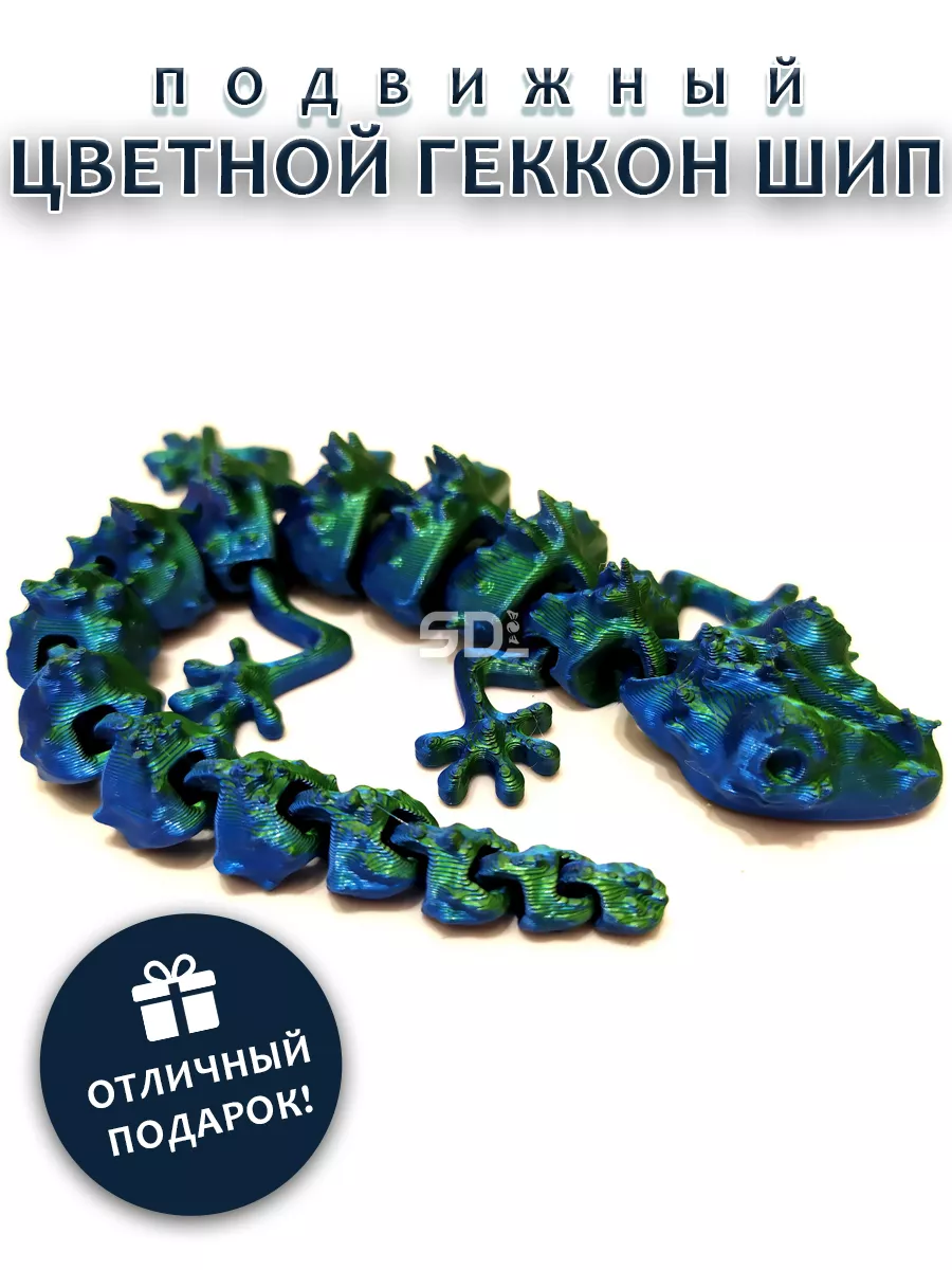 Этот яркий и привлекательный геккончик станет идеальным компаньоном. Изготовленный с помощью 3D печати, он удивляет своим переливающимся окрасом и уникальным дизайном. Гибкий хвост позволяет создавать различные позы и движения, добавляя элемент интерактивности в игру. Шипы на спине придают игрушке оригинальный вид и делают ее еще более интересной.