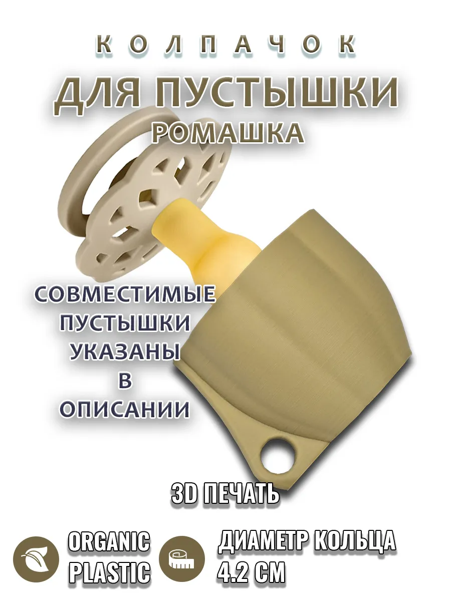 Подходит к соскам пустышкам разных брендов с кольцом ромашка диаметром 4.2см.