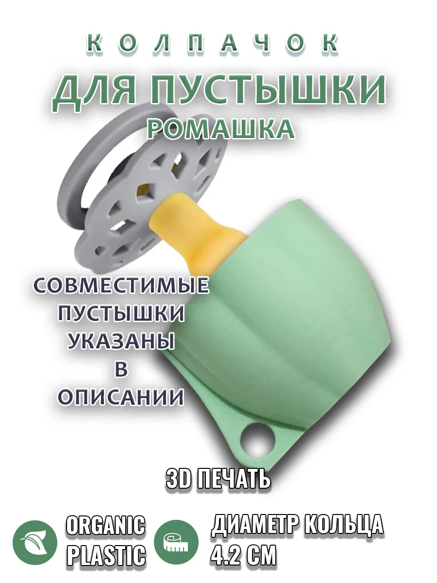 Подходит к соскам пустышкам разных брендов с кольцом ромашка диаметром 4.2см.
