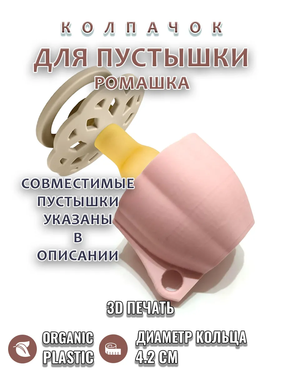 Подходит к соскам пустышкам разных брендов с кольцом ромашка диаметром 4.2см.