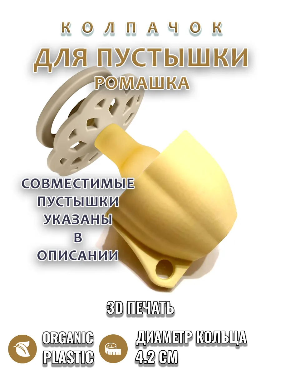 Подходит к соскам пустышкам разных брендов с кольцом ромашка диаметром 4.2см.