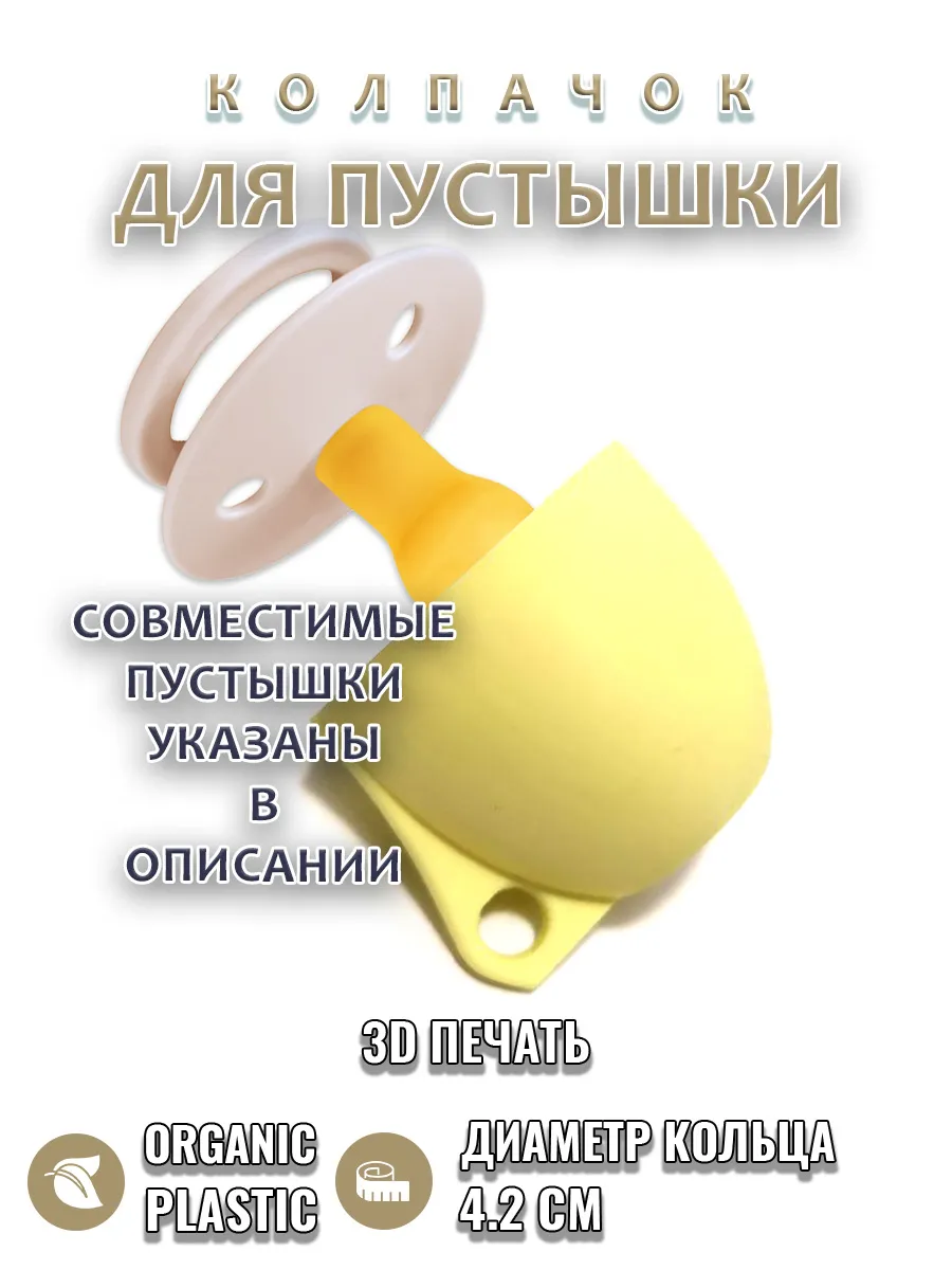 Колпачок совместим с пустышками, сосками таких брендов как RADUGA и BIBS с круглым кольцом, диаметром 4.2см. НЕ СОВМЕСТИМ С БРЕНДАМИ - Miyoumi и Paomma.