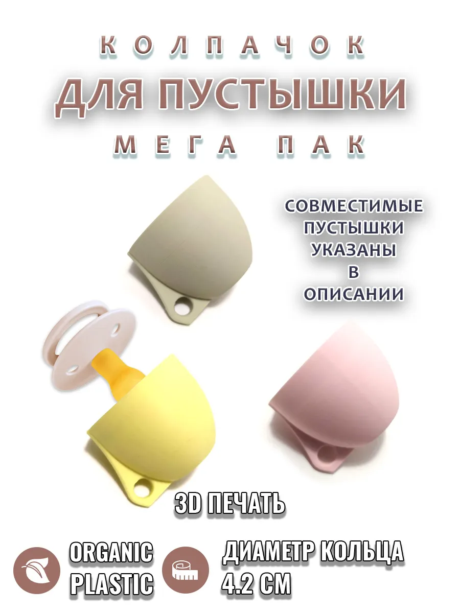 Колпачок совместим с пустышками, сосками таких брендов как RADUGA и BIBS с круглым кольцом, диаметром 4.2см. НЕ СОВМЕСТИМ С БРЕНДАМИ - Miyoumi и Paomma.