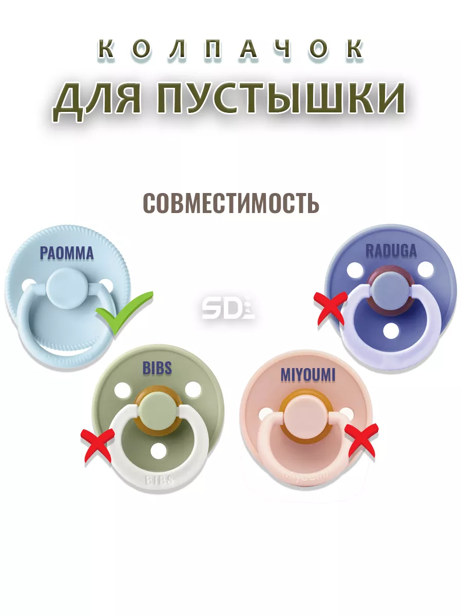 Колпачок подходит к соскам пустышкам бренда PAOMMA c кольцом диаметром 4.6см. НЕ СОВМЕСТИМ С БРЕНДАМИ - Miyoumi, BIBS и Raduga.