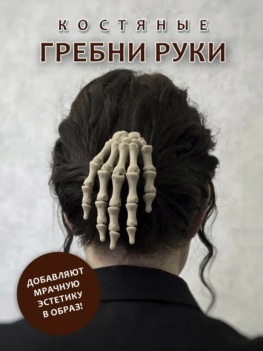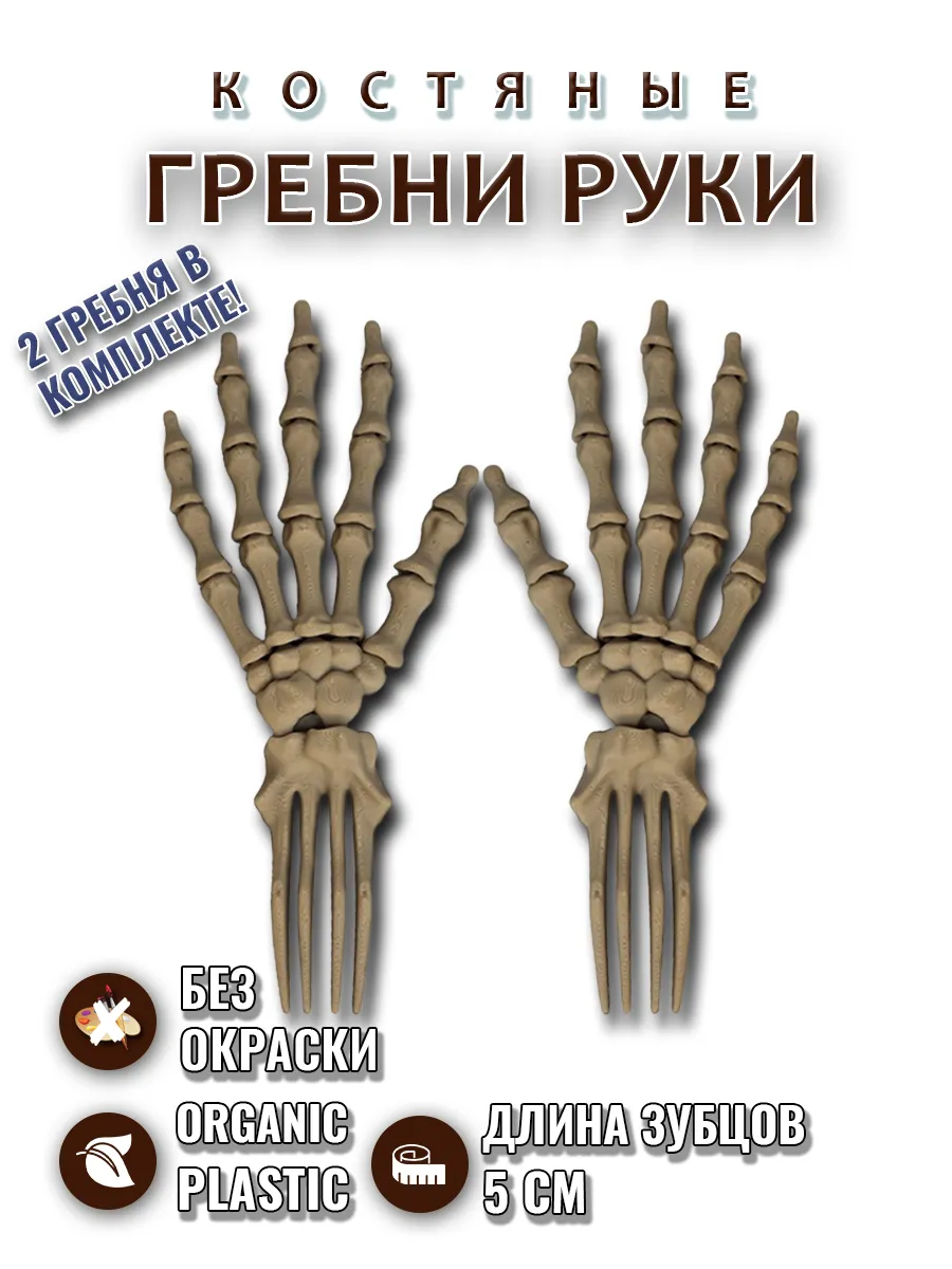 Погрузитесь в мир уникального стиля с набором гребней для волос в виде реалистичных рук скелета цвета слоновой кости. Этот комплект включает два гребня, изображающие правую и левую руку, которые станут не только функциональным аксессуаром, но и оригинальным элементом вашего образа.