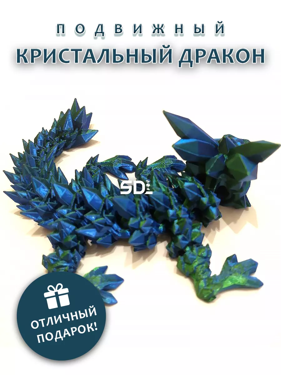 Представляем сине-зеленого кристального дракона, который станет настоящим украшением вашей коллекции! Этот удивительный персонаж, созданный с применением 3D печати, поражает своей яркой цветовой гаммой и уникальным дизайном. Дракон имеет изящные кристаллы на спине и хвосте, которые переливаются при любом освещении, добавляя волшебства и загадочности.