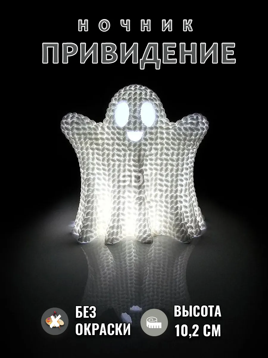 Этот очаровательный ночник в виде улыбающегося белого приведения станет ярким и уютным дополнением к вашему интерьеру. Его вязаная текстура придаёт ему уникальный и тёплый вид, создавая атмосферу уюта и волшебства. Ночник излучает мягкий свет, идеально подходящий для создания расслабляющей обстановки в спальне или детской комнате.