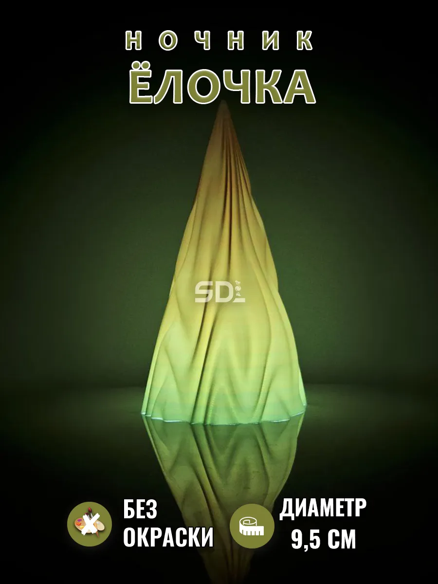 Этот уникальный ночник в виде ёлочки станет ярким акцентом в любом интерьере. Изготовленный с использованием 3D-печати, он радует глаз радужными оттенками, создавая атмосферу волшебства и уюта. Свет мягко рассеивается сквозь многогранные формы, наполняя пространство теплом и светом.