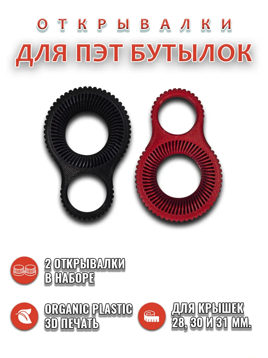 Набор открывалок для ПЭТ бутылок из двух штук в стильных красном и черном цветах станет незаменимым аксессуаром для вашего дома или пикника. Эти открывалки, созданные с использованием современных технологий 3D печати, отличаются оригинальным дизайном и удобством в использовании.