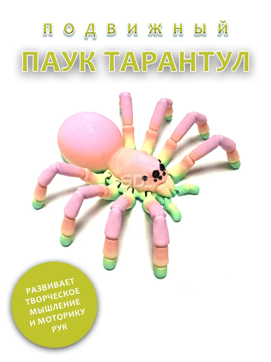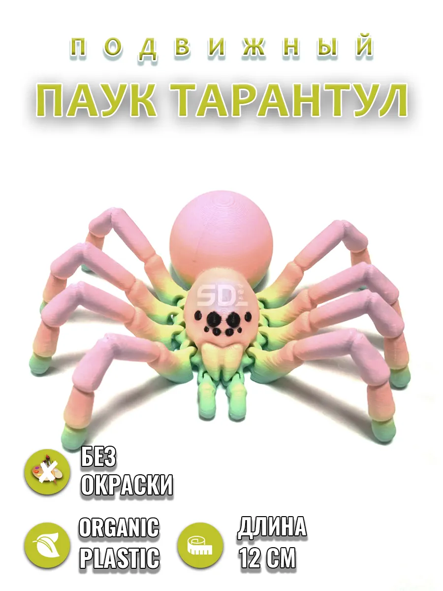 Этот яркий и забавный радужный паук-тарантул станет настоящим украшением в коллекции игрушек! Изготовленный на 3D-принтере, он привлекает внимание своей необычной формой и яркими цветами. Игрушка идеально подходит для развития воображения и креативности, позволяя создавать свои собственные истории и приключения.