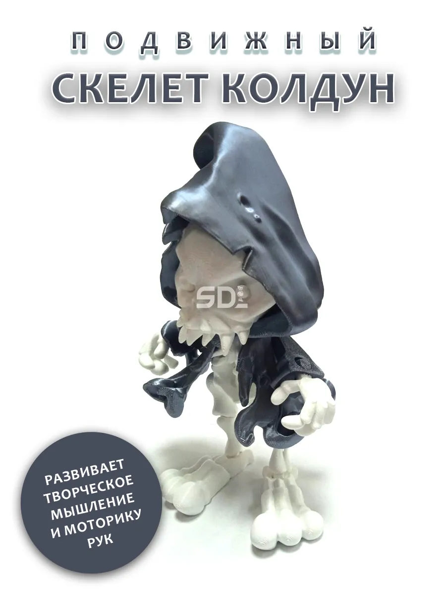 Погрузитесь в мир магии и тайн с этой уникальной игрушкой — подвижным скелетом колдуна, облаченным в серебристую развевающуюся мантию с капюшоном. Каждая деталь фигурки, напечатанной на 3D-принтере, выполнена с высокой точностью, что придает ей загадочный и мистический вид.