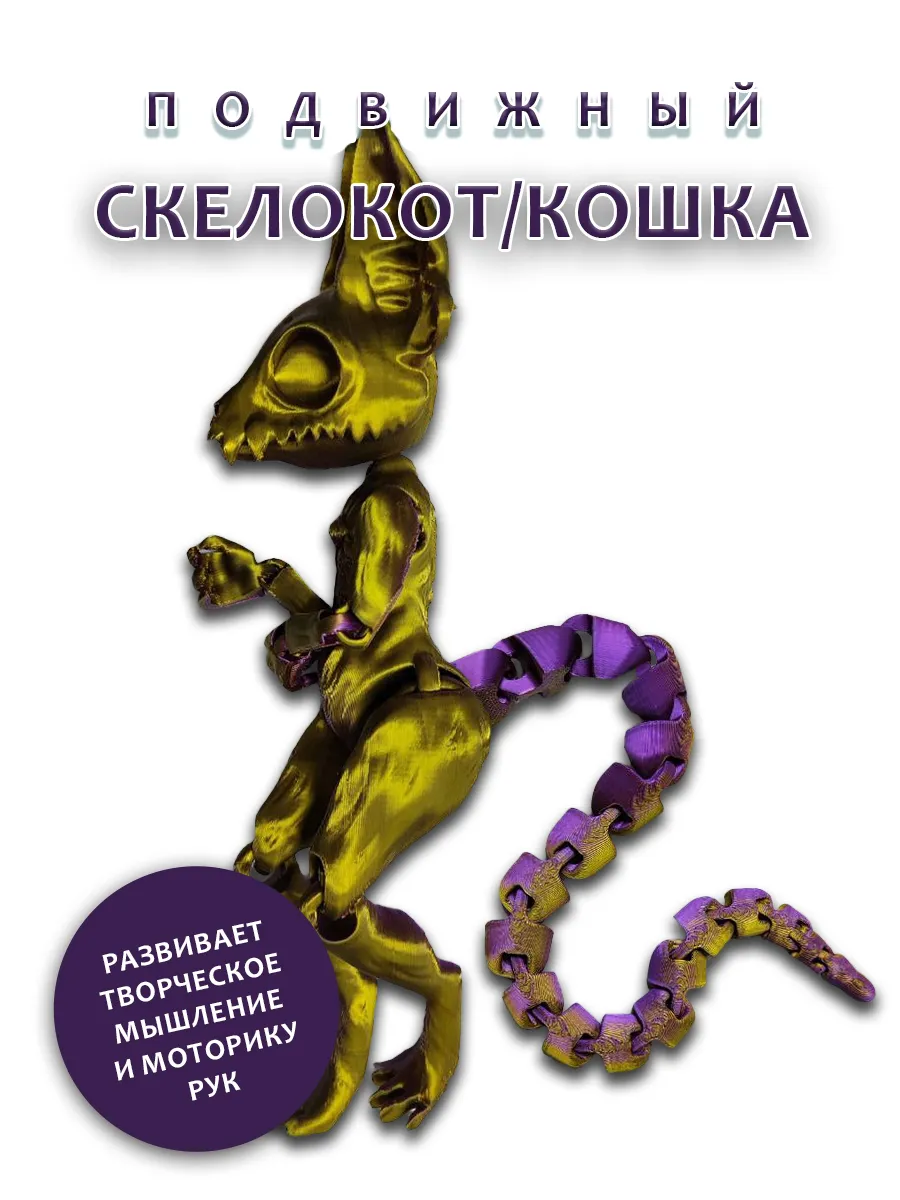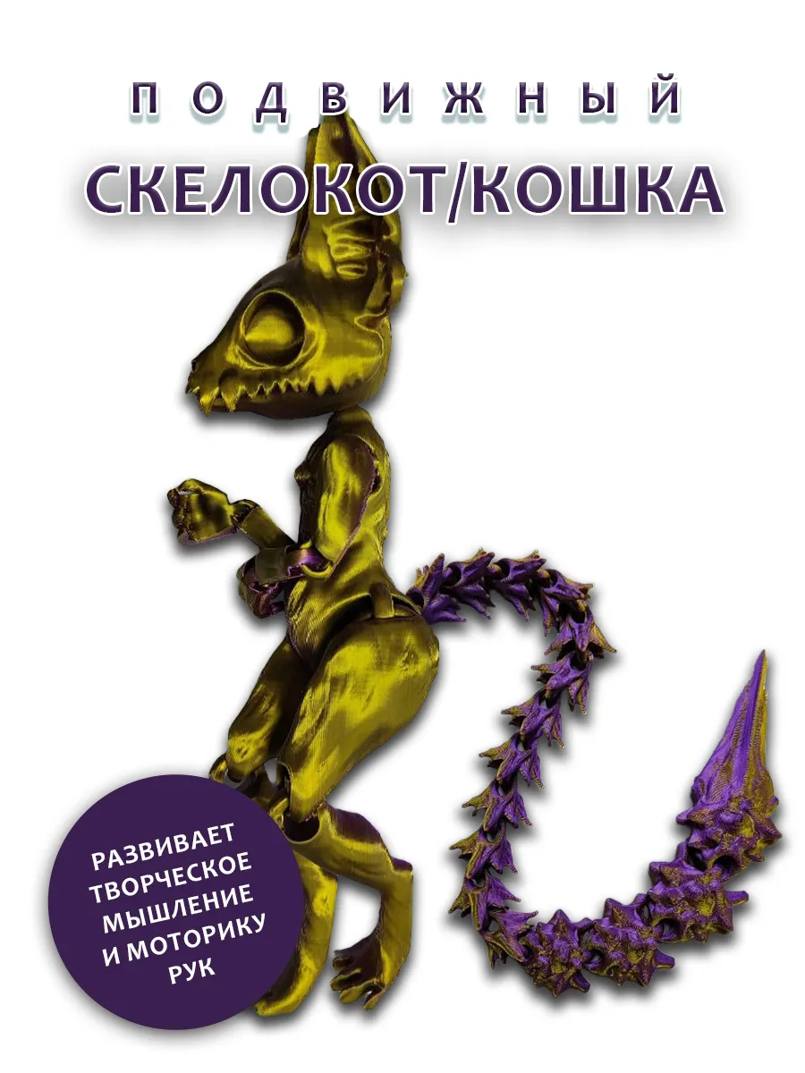 Каждый экземпляр напечатан на 3D-принтере, что обеспечивает высокую детализацию и оригинальность. Этот волшебный котик идеально подходит как для коллекционеров, так и для тех, кто ищет необычный подарок. Этот скелет кота станет ярким акцентом в вашем доме и принесет радость всем любителям уникальных игрушек!