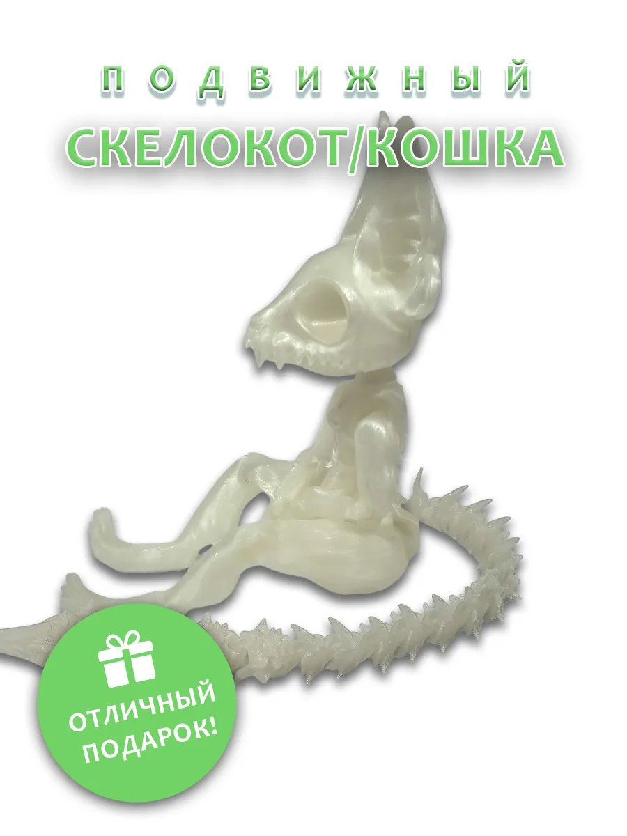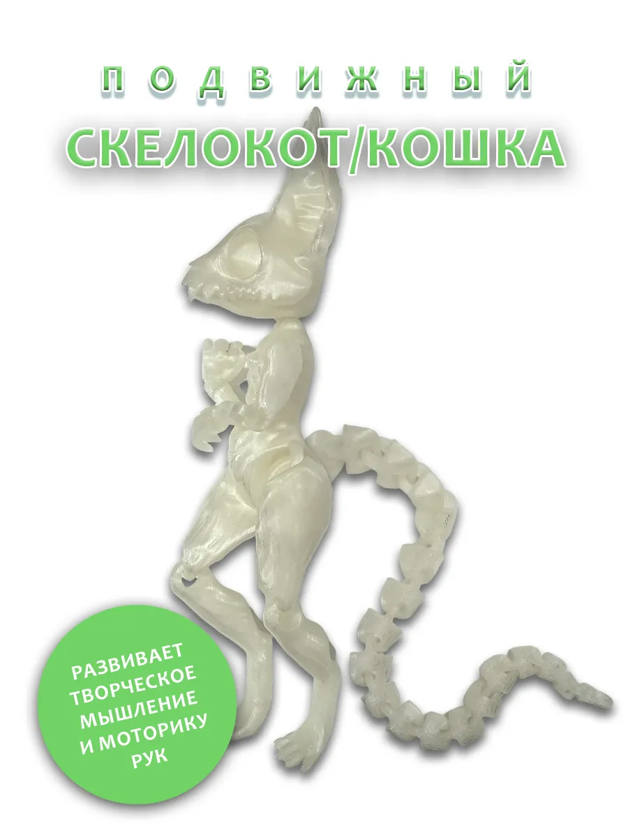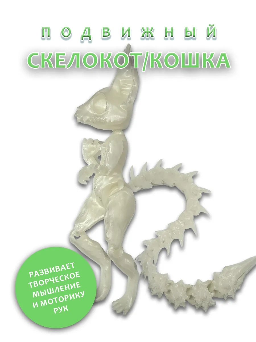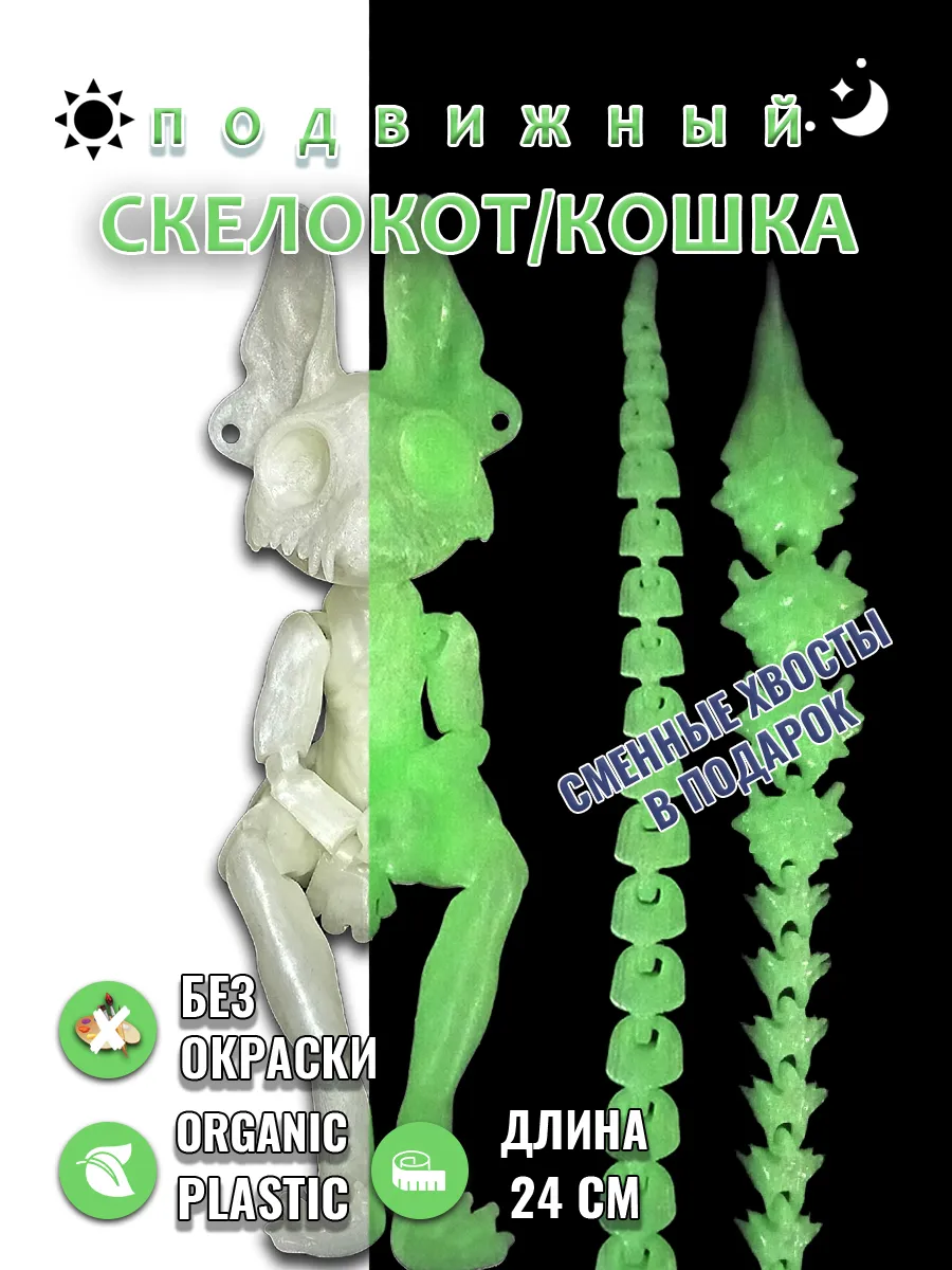 Представляем подвижную игрушку загадочного скелета кота, который светится в темноте! Этот уникальный персонаж с торчащими ушками и острыми зубками станет ярким дополнением к вашей коллекции. Его цепкие лапки позволяют легко менять позы, добавляя игривости и динамичности. Особенность игрушки — оригинальные сменные хвосты, которые можно менять в зависимости от настроения или игры.