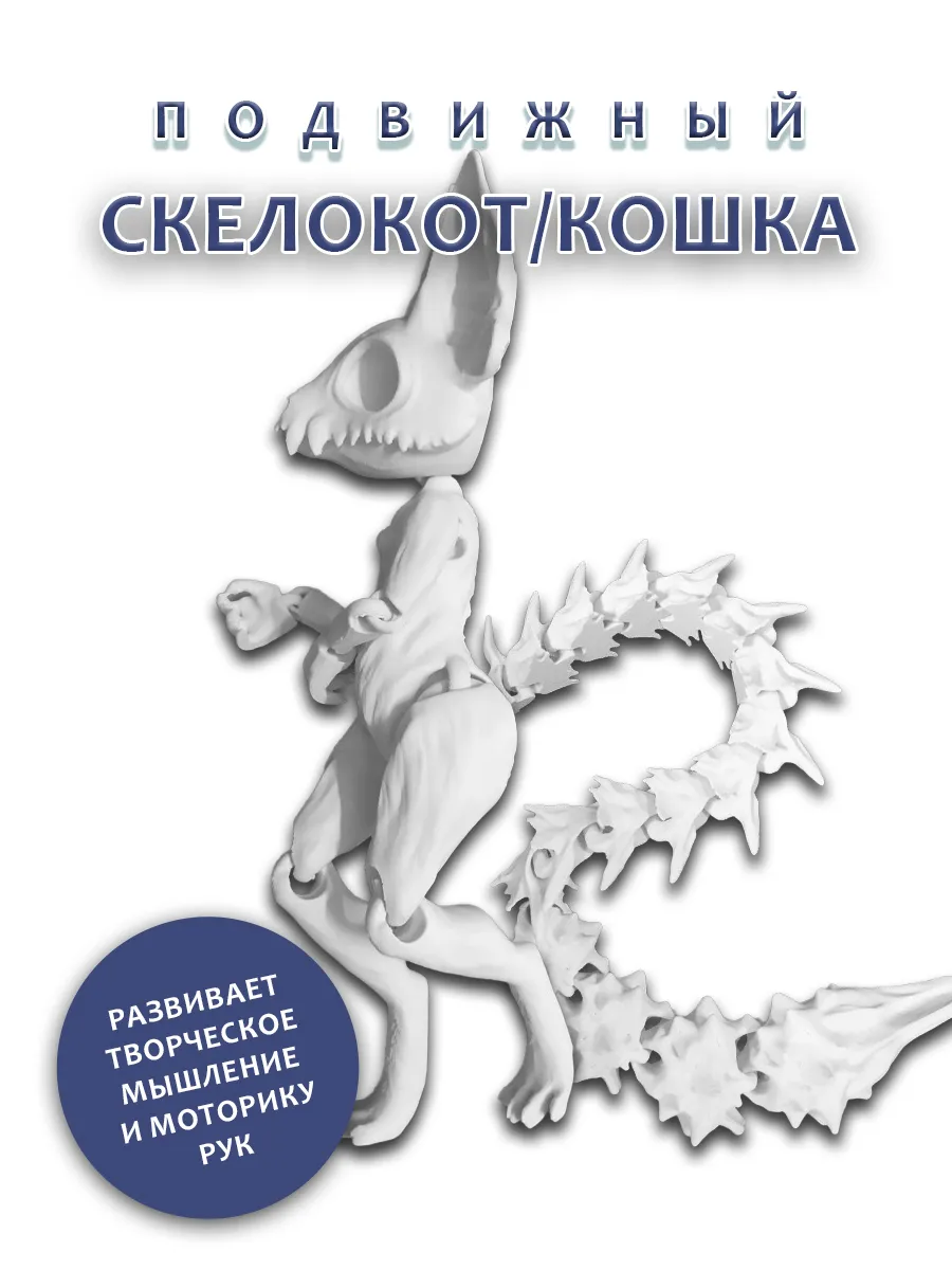 Особенностью этой игрушки являются сменные хвосты, которые позволяют менять её облик и выражать индивидуальность. Напечатанная на 3D-принтере, фигурка сочетает в себе оригинальность и современный стиль, идеально подходя как для игр, так и для любителей необычных вещей. Подарите себе или своим близким кусочек магии и фэнтези с этим очаровательным скелетом кота!