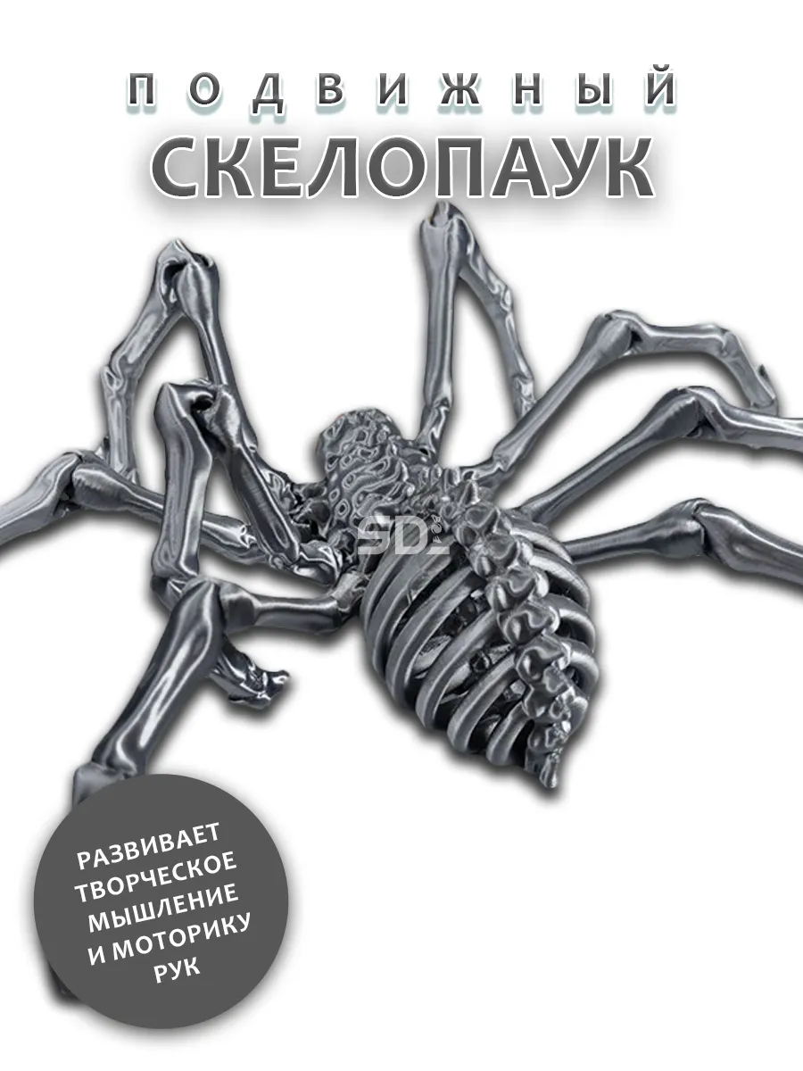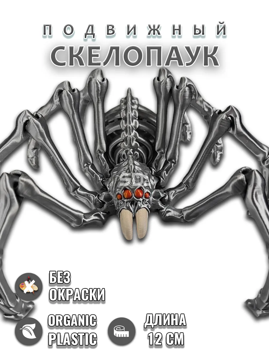 Подвижная игрушка-скелет паука переливчатого серебристого цвета станет настоящим украшением игровой коллекции. С длинными лапами и множеством ярких глаз, этот скелопаук выглядит реалистично и привлекает внимание. Изготовленный на 3D-принтере, он отличается уникальным дизайном и качественной детализацией.