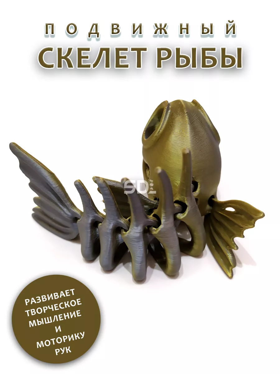 Погрузитесь в захватывающий подводный мир с нашей подвижной пластиковой игрушкой — скелетом рыбы! Эта интересная и забавная игрушка золотисто-серебристого цвета станет отличным подарком на любой праздник. Скелет рыбы выполнен из качественного пластика, что позволяет легко менять положение позвоночника, плавников и хвоста, создавая различные позы.
