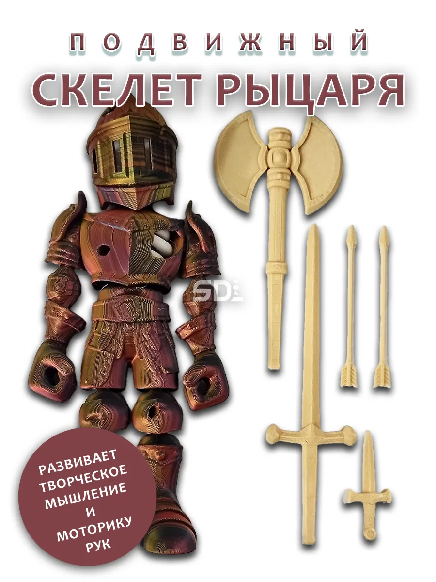В комплекте идет разнообразное оружие, включая мечи, стрелы и другие атрибуты, которые помогут развить воображение и креативность. Напечатанная на 3D-принтере, игрушка отличается оригинальным дизайном и качеством исполнения, что делает ее отличным подарком для юных героев. Позвольте вашим друзьям и близким стать частью увлекательного мира рыцарей и приключений!