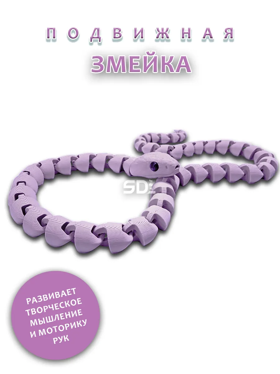 Эта фиолетовая змейка с дружелюбной мордочкой и выразительными глазками станет вашей любимой игрушкой. Ее длинный хвост позволяет создавать множество интересных игр, развивая воображение и креативность. Игрушка, напечатанная на 3D-принтере, отличается оригинальным дизайном и яркими цветами, что делает ее привлекательной.